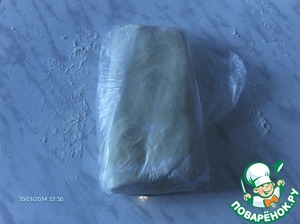 Далее убираем его в пакет и в холодильник на 30 минут. И таким образом повторяем еще 2 раза: достали, раскатали, сложили, убрали. В общей сложности получается 3 раза. Можно и больше, если есть время и желание, но 3 раза - это обязательно!
