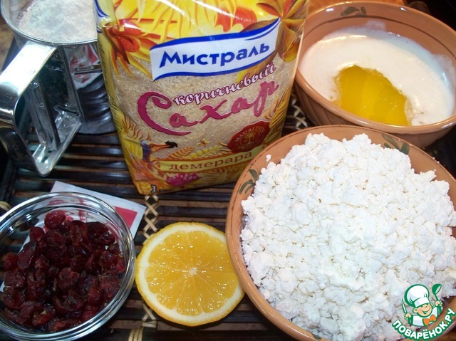 В своих записях недавно наткнулась на рецептик этого печенья. Привлекла меня простота изготовления, отсутствие яиц и интересная добавка - сушеная клюква. Клюкву люблю в любом виде, да и творог тоже. Результат превзошел все ожидания. Печенье получается нежным, кисло-сладким, с легким карамельным вкусом от присутствия в составе коричневого сахара. С удовольствием предлагаю рецепт.