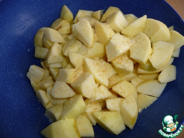 Яблоки очистить и нарезать кусочками. Посыпать цедрой лимона.