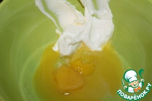 В желтки добавить сметану и взбить, белки пока убрать в сторону. -