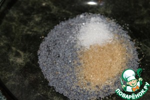 Смешать мак и сахар, я добавила ещё немного и белого сахара (по желанию).