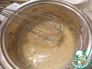 Не делайте его заранее, он может закристаллизоваться. Если это произошло, то добавьте воды чуть-чуть и подогрейте до однородной массы. Затем, быстро мешая, введите 1 яйцо.