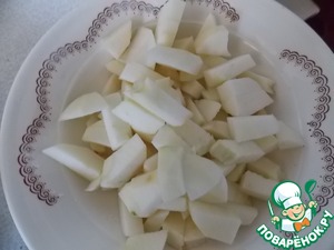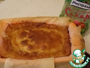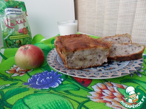 Честно скажу, что рецепт нашла в инете, и там он представлен, как кекс. Но по мне он больше напоминает шарлотку. Такой же сочный и нежный за счет заливки. Которая за счет коричневого сахара от "Мистраль" приобретает карамельный вкус.