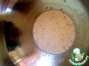 Дрожжи и сахар разводим в теплом молоке, ждем минут 15, пока появится шапочка. -