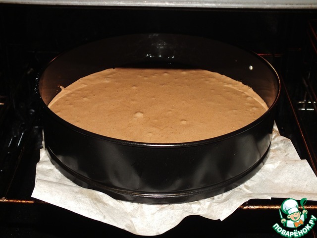 Выливаем тесто в смазанную маслом разъемную форму д=24-26см
