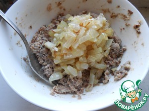 Когда лук готов, добавляем его к рыбке и перемешиваем.