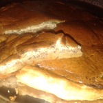 Вот такой румяный пирог достаем из духовки. Я про него немного забыла, и он хорошенько подрумянился.