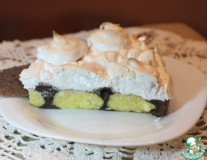 Рецепт «Шоколадный торт с творожными шариками и меренгой»: