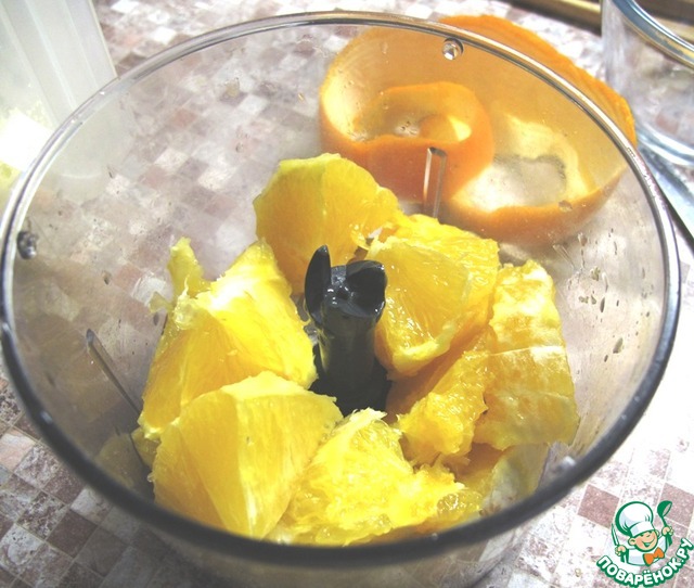 Апельсины очистить от кожуры и белой цедры. Измельчить в блендере в пюре.