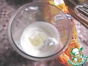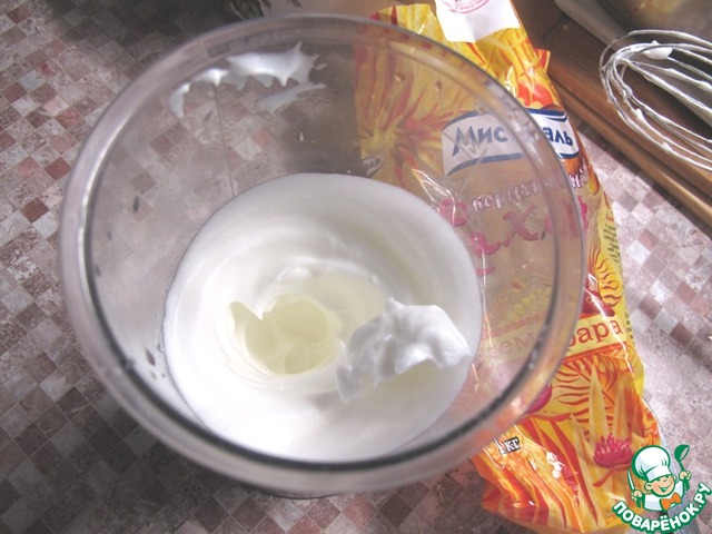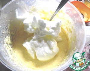 Яйца разделить на белки и желтки. Белки взбить в крепкую пену.