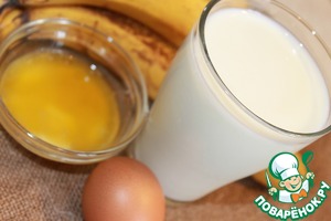 Сливочное масло растопить, добавить молоко, яйцо, спелые бананы