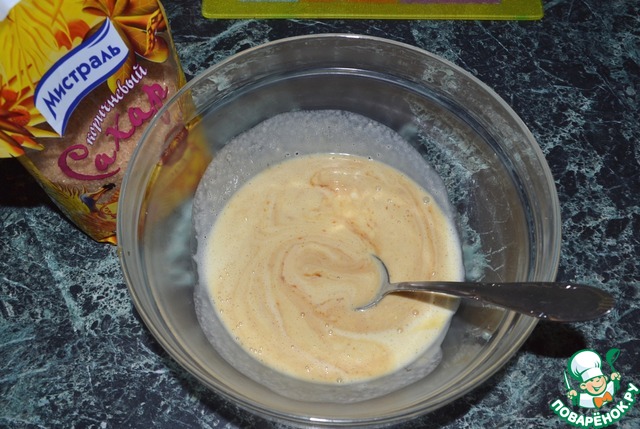 4. Желтки взбейте с оставшейся половиной сахарного песка и ванилью. |