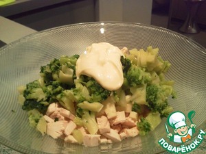 Брокколи отвариваем несколько минут, остужаем и нарезаем.