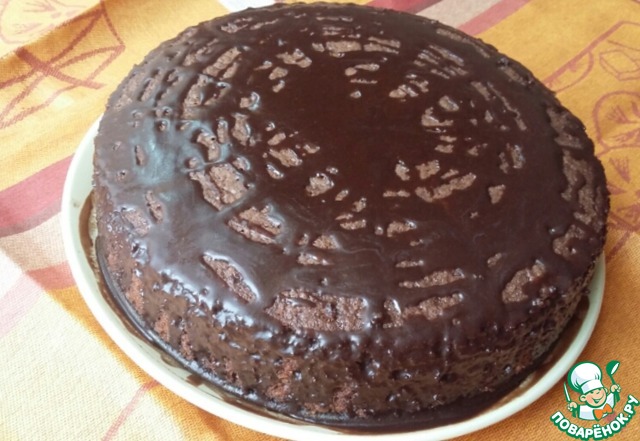 Готовый кекс должен постоять. Далее его переворачиваем и поливаем глазурью. Для этого разогреваем масло и сливки, добавляем шоколад и размешиваем. Поливаем сверху.