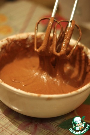 Затем струйкой добавляйте муку и аккуратно взбивайте до однородной массы. Тесто по консистенции должно быть больше похоже на тесто для брауни, чем для печенья.