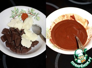 Разогрейте духовку до 180 С, Шоколад 115 г и сливочное масло растопите на водяной бане