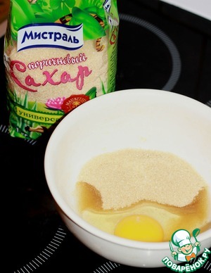 Взбейте яйцо, коричневый сахар ТМ "Мистраль" и ванилин на высокой скорости до образования пушистой и легкой массы.