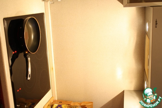 Убираем масло с плиты. Даем остыть 1-1,5 мин.