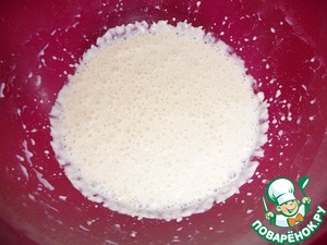 Через час дрожжи поднялись шапкой, можно приступать к замешиванию теста.