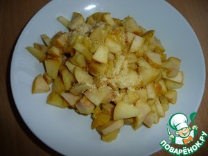 Взять небольшой кусочек сливочного масла и слегка обжарить в нем яблоки, добавить 2 ч. л. сахара.