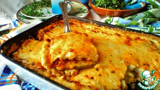 Картофельно-мясная запеканка с соусом "Бешамель"