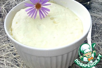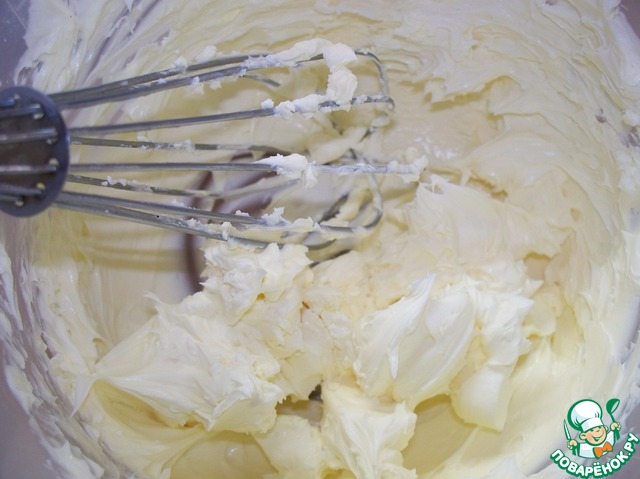 Сливочный сыр (у меня был Маскарпоне) соединяем с мукой, яичным белком, сахарной пудрой. Хорошенько перемешиваем венчиком.