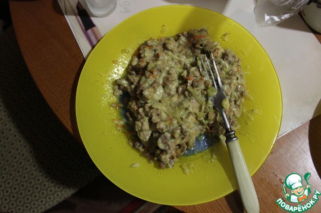 - Курица (Мелконарезанного мяса. Возможна замена на креветки, крабы, лобстеры (где бы их взять)) — 2 стак.