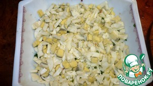 Следующий слой рубленное отварное яйцо. Сеточка майонеза