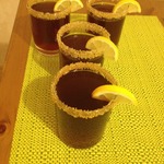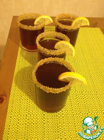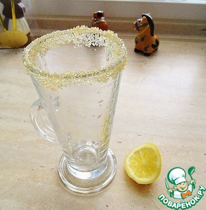 Пока заваривается наш ароматный чай, нужно украсить стаканы. Края стакана смазываем лимоном и окунаем в коричневый сахар, чтобы частички сахара прилипли к бортикам.