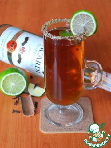 Процеживаем чай, добавляем сахар, ром и как следует перемешиваем. Разливаем по стаканам, подаем с ломтиками лимона.