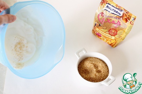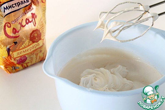 Постепенно, по частям добавляем сахар, не переставая взбивать.