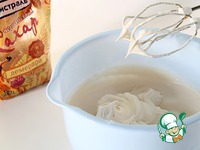 Пару слов о том, как получить правильную и стабильную меренгу. Белки должны быть комнатной температуры, миска для взбивания обезжирена, скорость средняя на протяжении всего процесса, в начале взбивания можно добавить в белки щепотку соли. Ничего нового, но, как говорится, повторение - мать учения) Взбиваем белки на средней скорости до мягких пиков. Если вы всё сделали правильно, то сможете запросто перевернуть миску у себя над головой, не опасаясь за её содержимое и свою причёску))