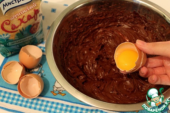 Приготовьте продукты для шоколадного мусса. Масло заранее достать из холодильника. Яйца хорошо вымыть с пищевой содой, разделить на белки и желтки. Нам понадобится 4 желтка и 6 белков. Сахар для мусса я взяла Демерара fine, он более мелкий, чем Демерара, но по вкусу такой же насыщенный -любимчик № 2))) Белки с сахаром взбить в пышную пену.