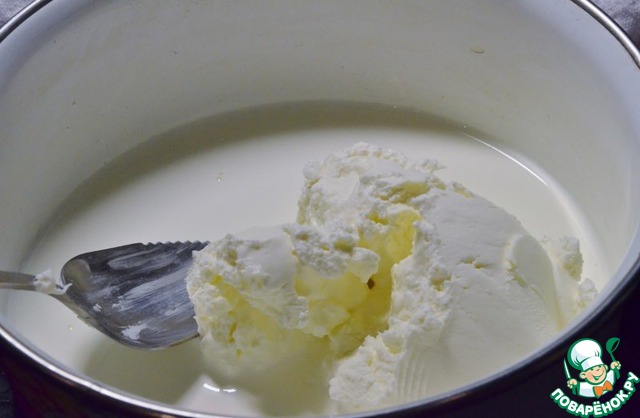 Теперь делаем мороженое. В миске смешать сливочный сыр и 200 мл. сливок.