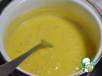 Молоко, 200 мл. сливок и коричневый сахар ТМ Мистраль довести до кипения. К желткам тоненькой струйкой, постоянно помешивая, влить горячие сливки с молоком.