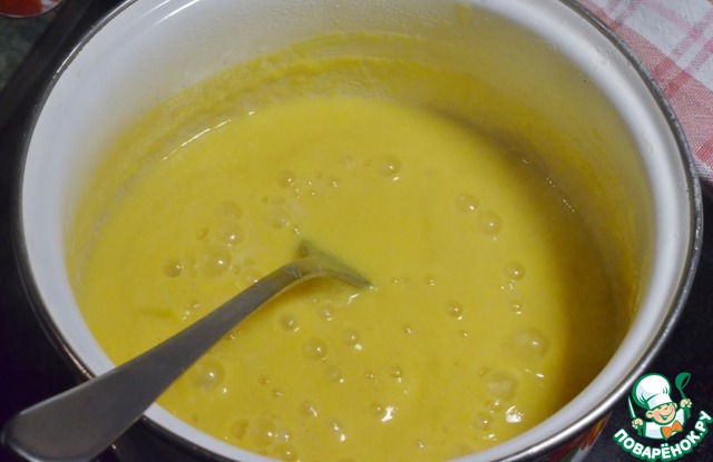 Вернуть на огонь. Варить, постоянно помешивая, до загустения.