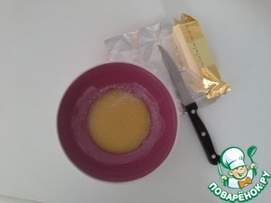 Берем масло и растапливаем его. После чего поливаем сверху на мясо.