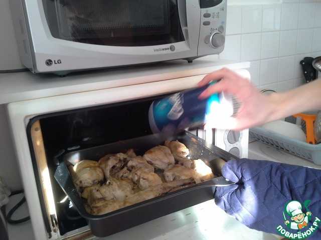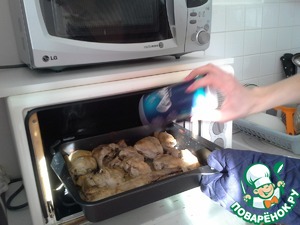 Ставим мясо в духовку. Во время готовки мясо следует переворачивать туда-сюда.