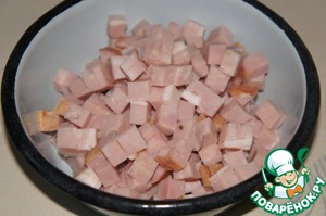 Бекон тоже нарезать небольшими кубиками, картофель - брусочками.