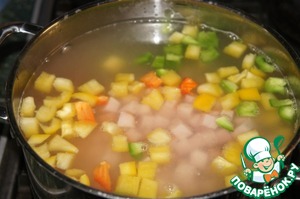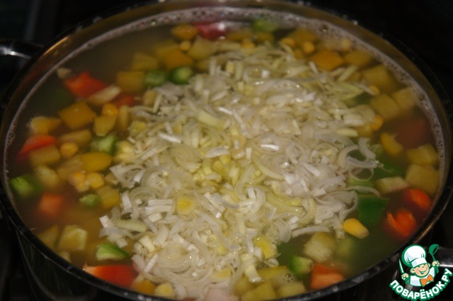 Всыпать порей, довести до кипения и проварить 2 минуты.
