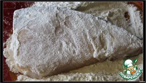 Филе или стейки разделить на порционные куски, обвалять слегка в муке, перемешанной с солью.