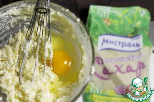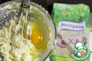 Масло комнатной температуры взбить с сахаром, добавить яйцо и тщательно вымешать.