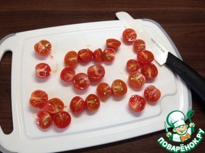 По одной помидорке срезом вверх аккуратно укладываем (начиняем тесто) в прорезанные нами кармашки, положив, накрываем сверху надрезанным тестом (крышечкой).