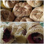 4. Хорошо завернуть ягоды с сахаром в трубочку и защипать края, чтоб начинка сильно не вытекала (при выпекании в любом случае будут течь, но это не страшно, так должно быть)