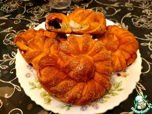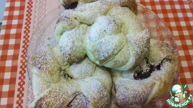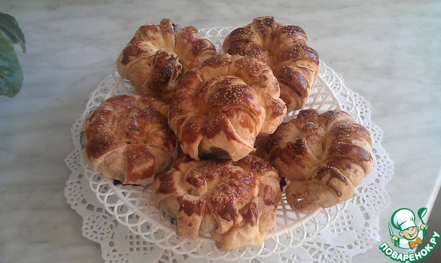 Предлагаю Вам еще один вариант выпечки из слоеного теста. Быстро, вкусно, ароматно и очень красиво. Угощайтесь!!! За идею данного рецепта от всей души благодарю кулинара allenka (Алла-Алена)!!!