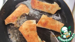Нагреваем на сковороде масло и кладём наши рулетики. Обжариваем до румяной корочки. Приятного аппетита.