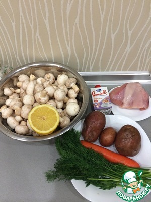 Ингредиенты для «Крем-суп с грибами и индюшатиной»: