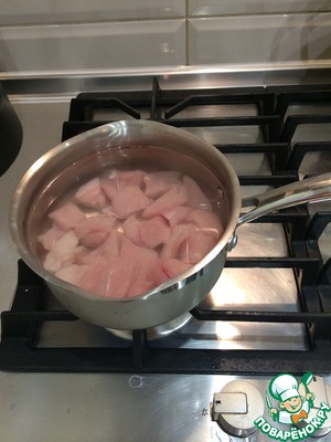 В небольшой кастрюле (у меня 1,5л) варим бульон из индюшатины, солим