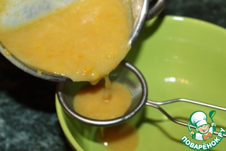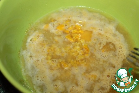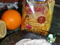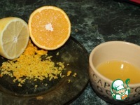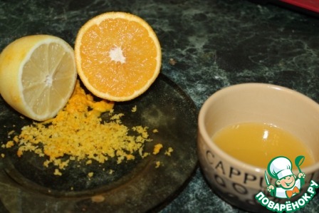Натереть цедру апельсина и лимона, выдавить сок по 50 мл каждого (всего 100 мл получается)