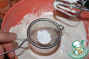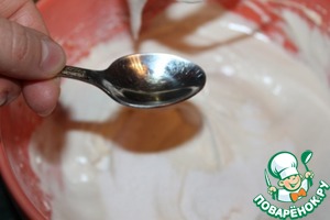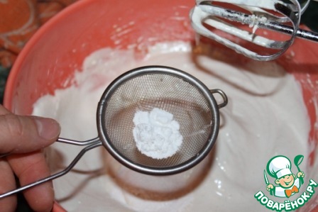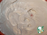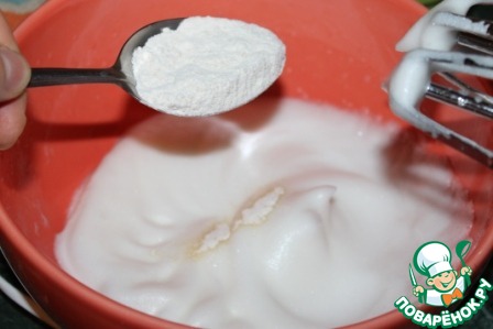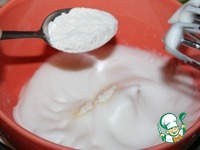 Для начала замечу, чтоб меренги хорошо получились, нужно соблюдать несколько правил: миска для взбивания меренгов должна быть просторной и совершено чистой и сухой, ни грамма жира, аккуратное разделение белка и желтка, чтоб ни капли желтка не попало в белок, и постепенное взбивание, начиная с маленькой скорости, постепенно прибавляя, придерживаясь всего этого, всё получится без хлопот. Итак, взбиваем белки до мягких пиков, постепенно добавляя сахарную пудру. Взбивайте, пока пена не станет гладкой и блестящей.
